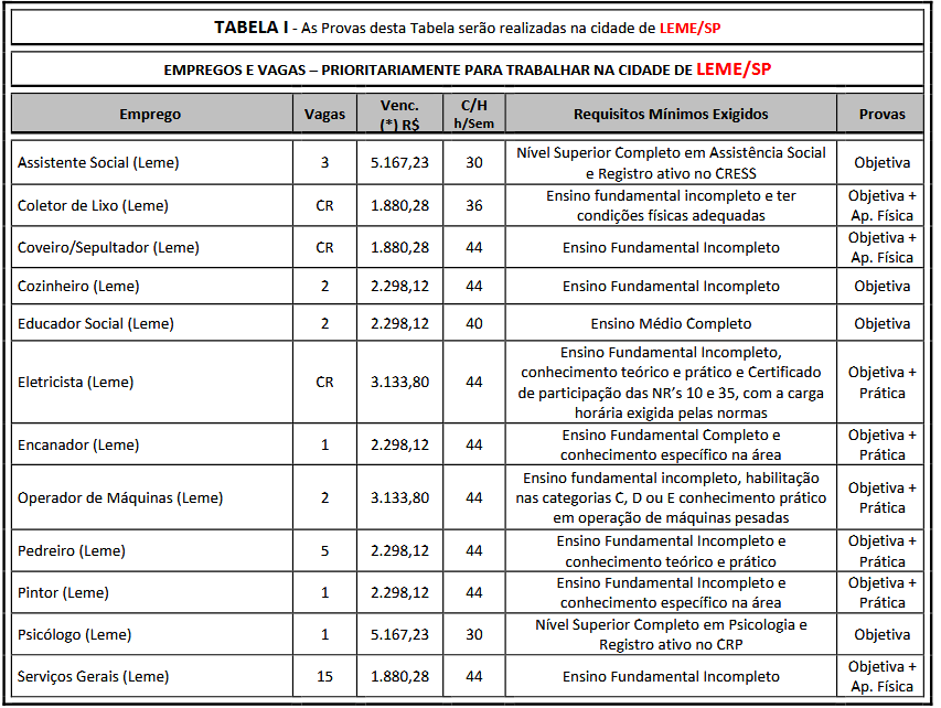 A realização da prova objetiva está prevista para o dia 3 de maio, em Leme. Poderá, contudo, haver mudanças na data prevista dependendo do número de inscritos e a disponibilidade de locais para a realização das provas.